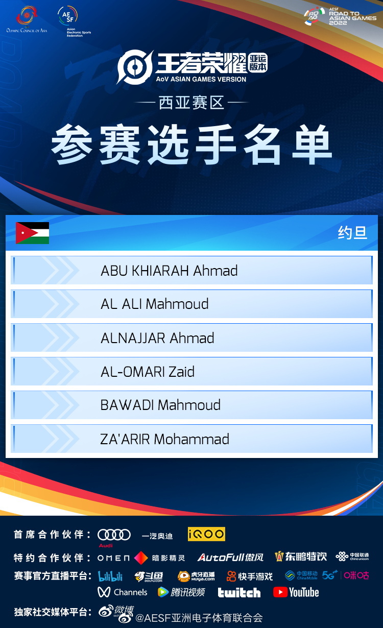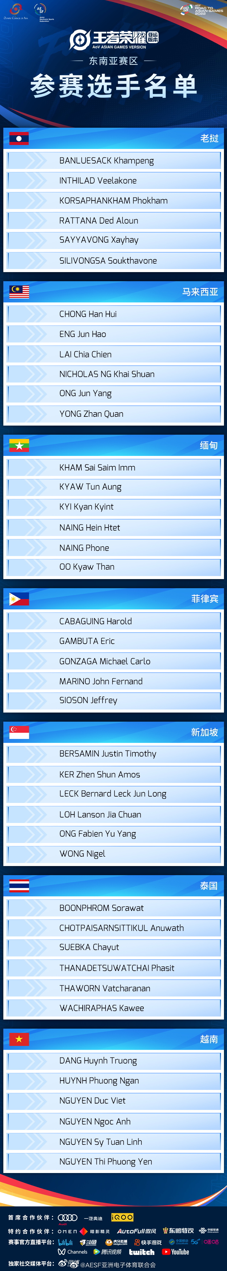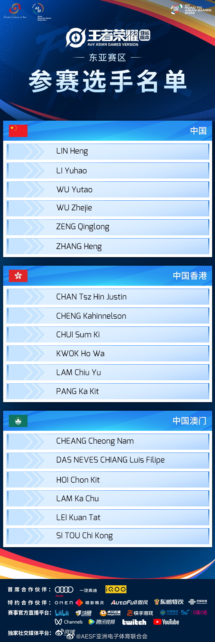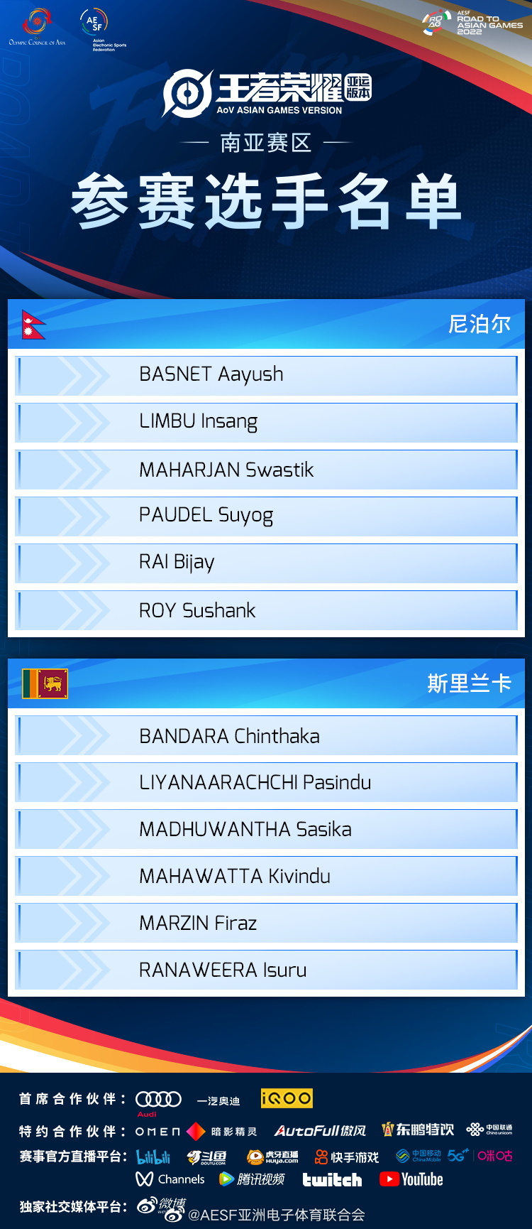 王者荣耀亚运版本各赛区参赛选手名单正式公布!